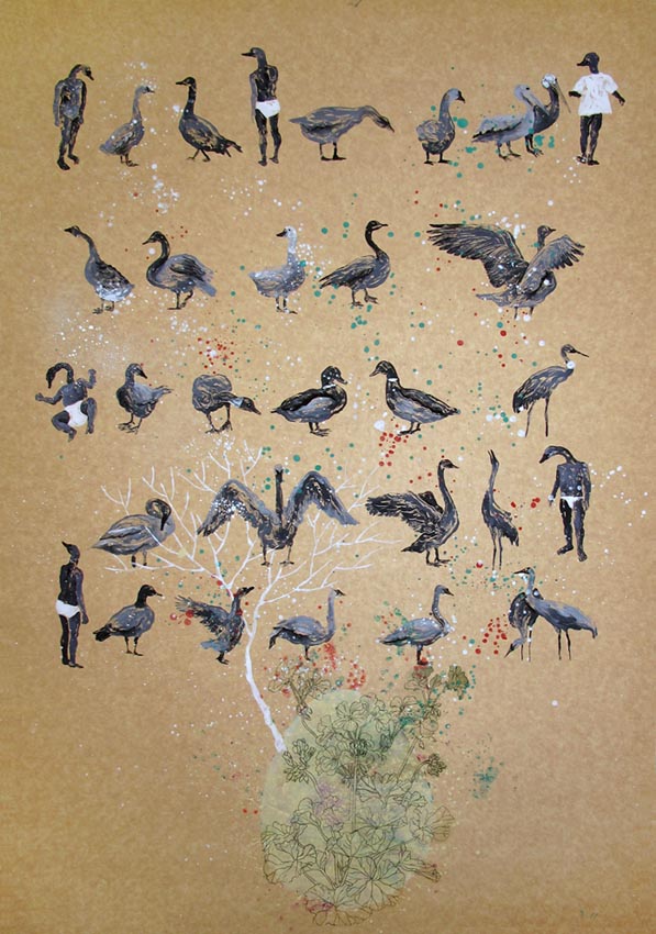 Pooneh Oshidari , Drowned, 2014, print ink on cardboard, 100x70cm