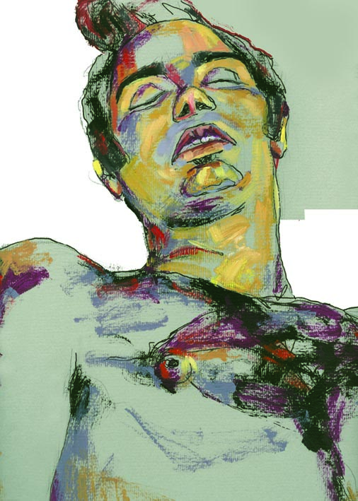 Pooneh Oshidari , Brother,2007,Oil and marker on cardboardm 70x50cm