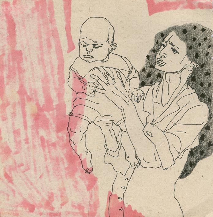 Pooneh Oshidari , Mother And the Child, 2012, mixed media on paper, 25X25cm
