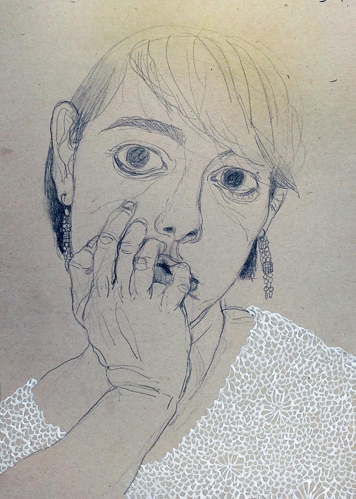 Pooneh Oshidari , Self portrait. pencil and ink on cardboard. 31 x 23 cm