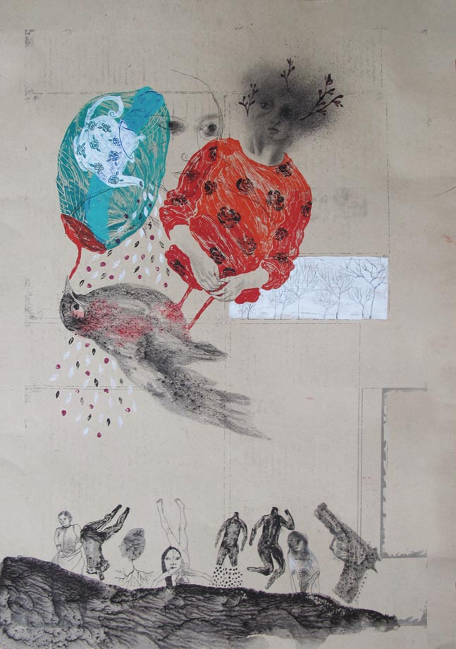 Pooneh Oshidari , Secret Garden, 2014, mixed media on cardboard, 70x50cm,,