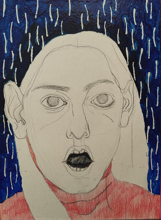 Pooneh Oshidari , Self portrait 5 - The wound series - 2024, ink and pencil on paper, 24 x 17 cm