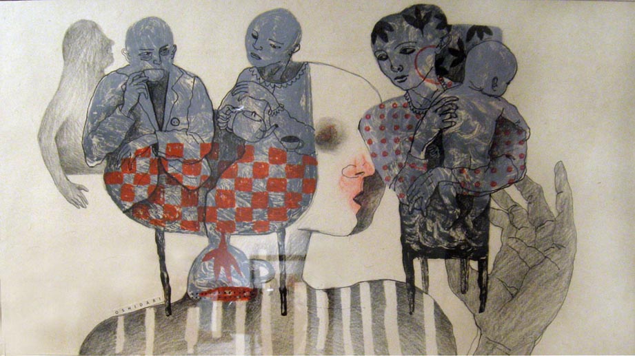 Pooneh Oshidari , Family , 2010, mixed media on cardboard, 25x45cm
