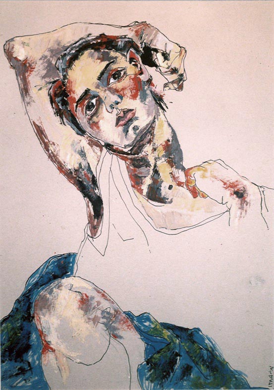 Pooneh Oshidari , Self Portrait , 2007, Oil and marker on cardboard, 70x50cm