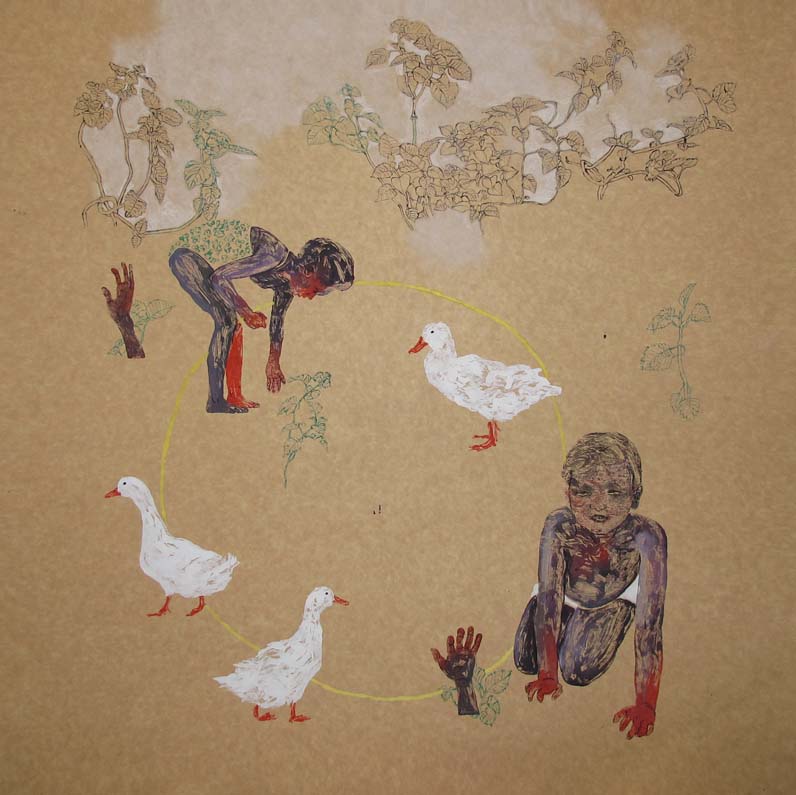 Pooneh Oshidari , Hide and Seek, 2015, oil and pencil on cardboard, 70 x 70 cm