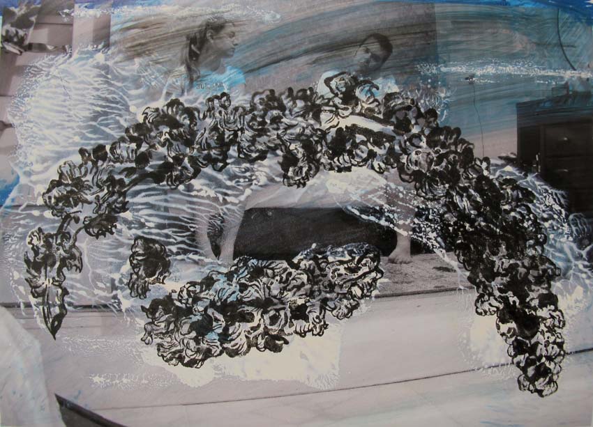 Pooneh Oshidari , Hide-out is Temple, Self portrait, Amnesia series, 2018, ink on photograph, 13 x 18 cm