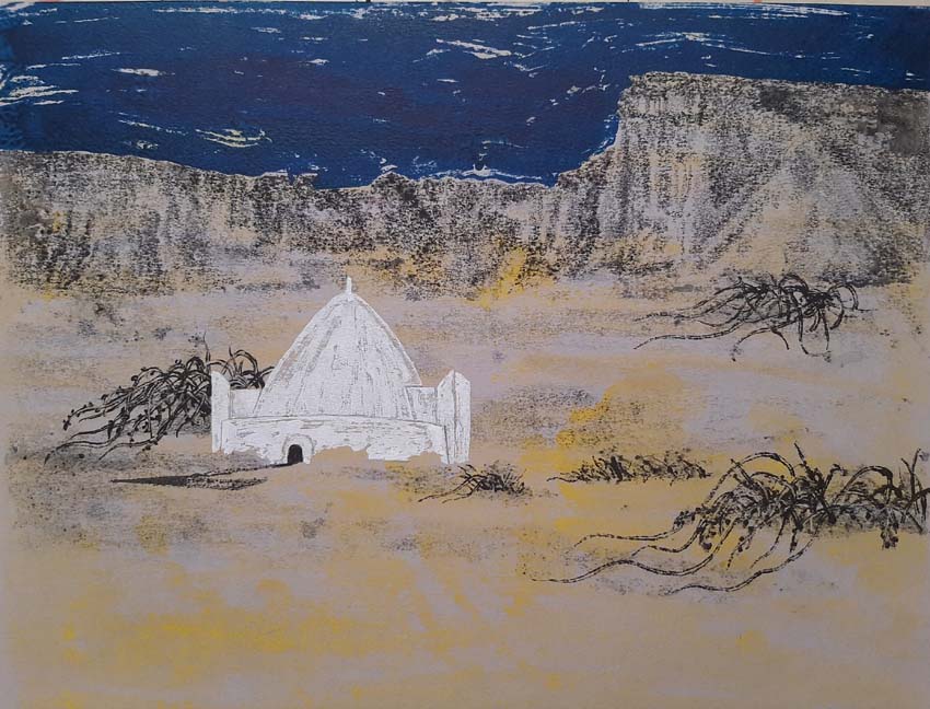 Pooneh Oshidari , Home-Land series, Gheshm cistern, 2019. ink on paper. 23 x 30 cm
