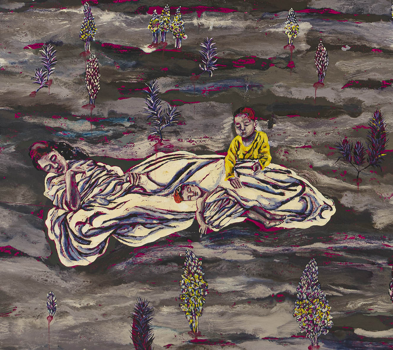 Pooneh Oshidari , Detail of painting, The desert flower, 2022-2023, relief ink and oil on prepared canson figueras paper,, 156x102cm, 156x104.5cm