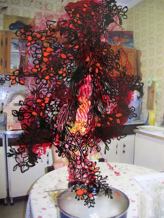 Pooneh Oshidari , Hide-out is Temple, Self portrait, Amnesia series, 2018, ink on photograph, 18 x 13 cm