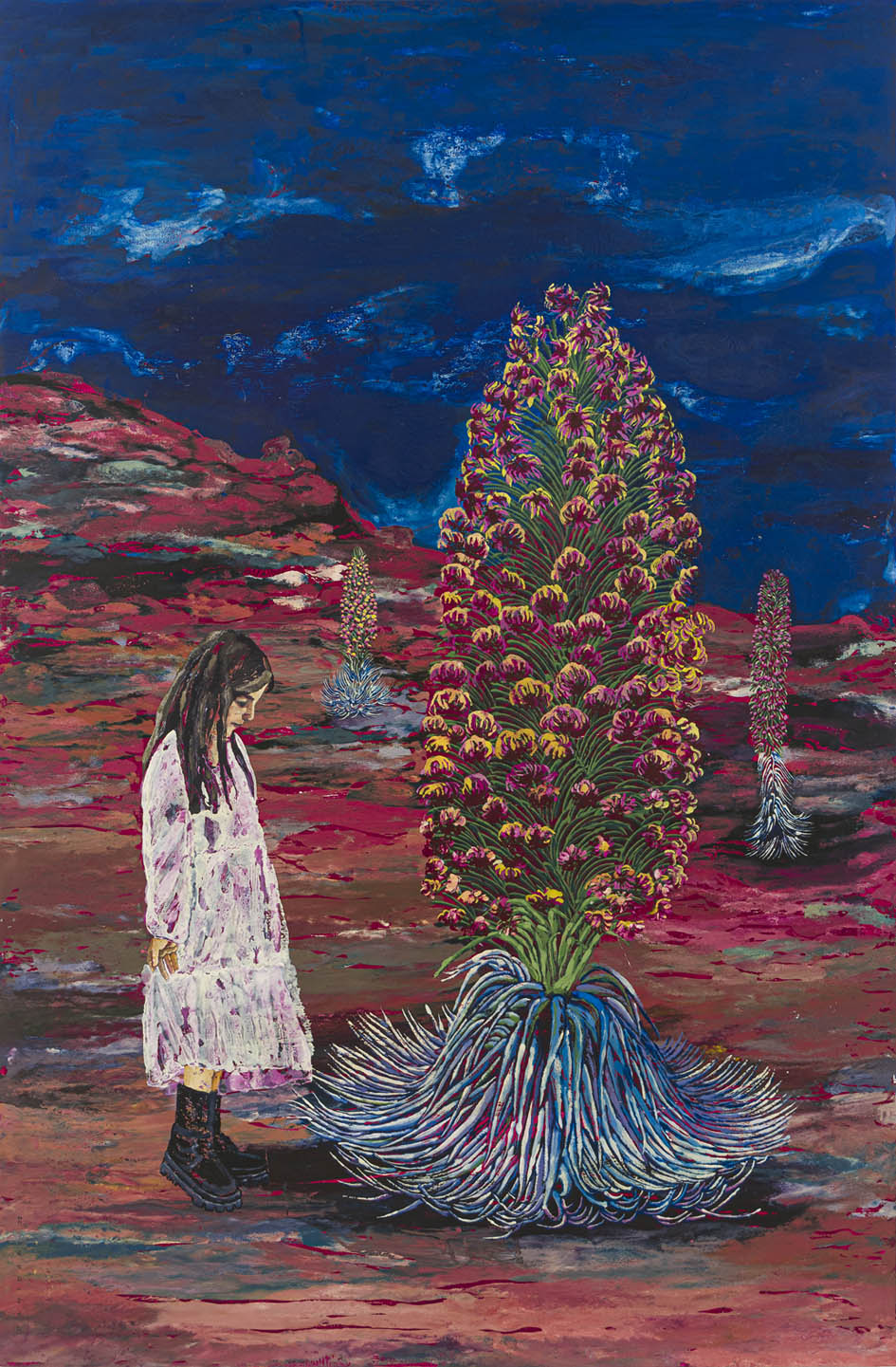 Pooneh Oshidari , Monster of desert, 2022, relief ink and oil on prepared canson figueras paper, 160x105cm