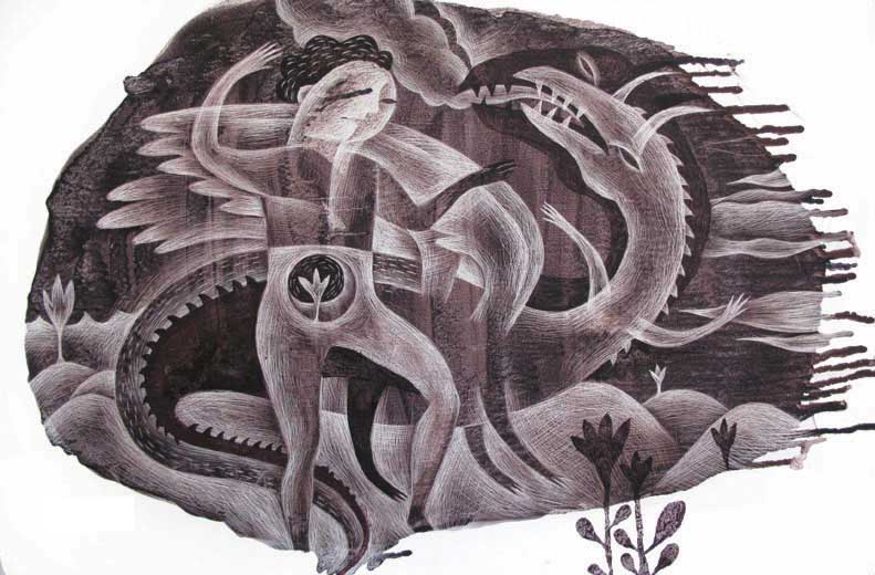 Pooneh Oshidari , The_War_Of_Good_And_Evil,_Iranian_myth_of_creation,_2009,_oil_on_canvas,_29x42cm