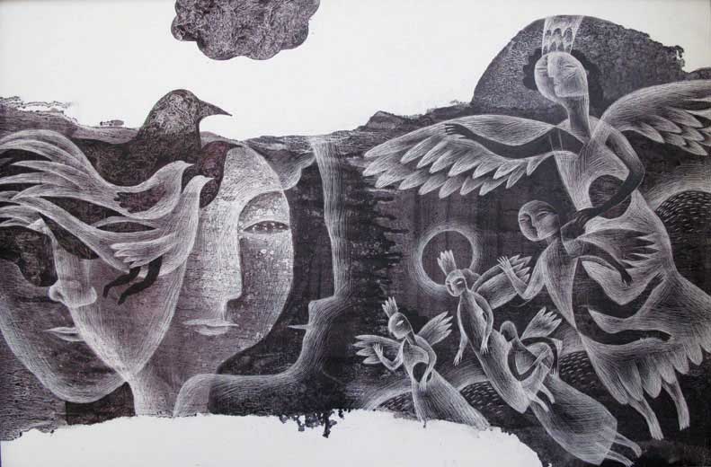 Pooneh Oshidari , The_Fravahars,_Iranian_Myth_of_Creation,_2009,_oil_on_canvas,_29x42cm