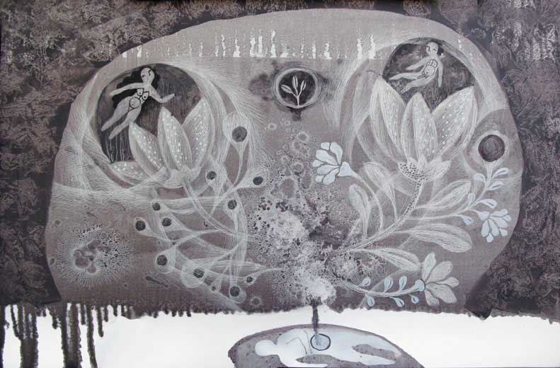 Pooneh Oshidari , Mashi_And_Mashyaneh,_Iranian_Myth_of_Creation,_2009,_oil_on_canvas,_29x42cm_2