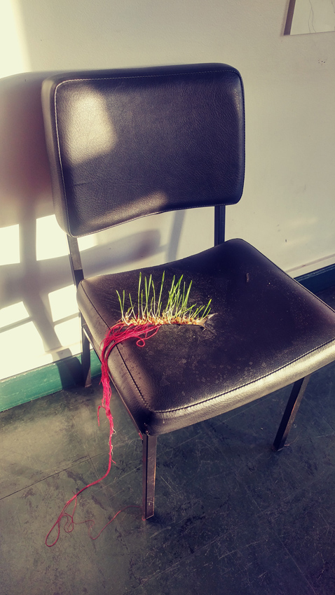 Pooneh Oshidari , The Care, 2018, growing wheat seeds at the age of 2 weeks, Cite Internationale des Arts, Paris