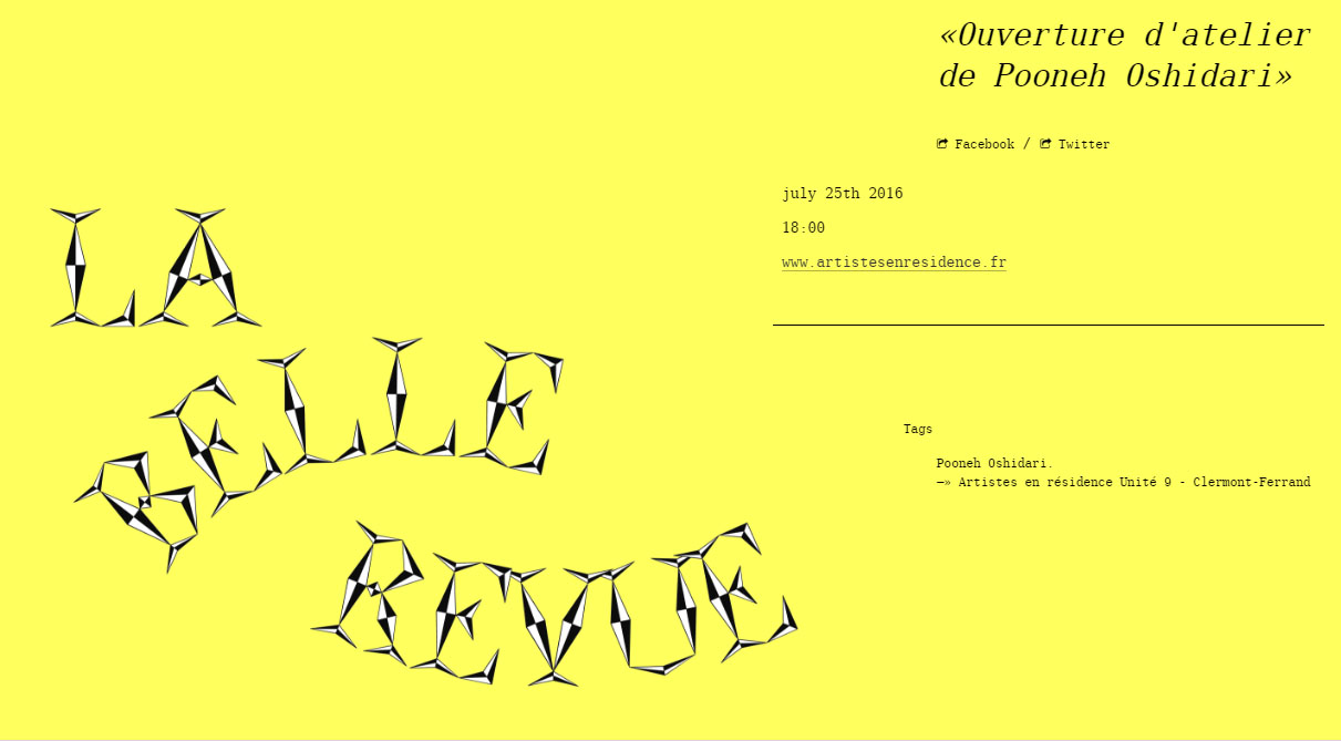 Pooneh Oshidari , "The Care" - Pooneh Oshidari. Artistes en Residence, Clermont-Ferrand. 2016