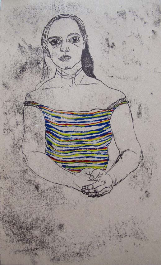 Pooneh Oshidari , self portrait. 2020. ink and oil on paper. 40 x 25 cm