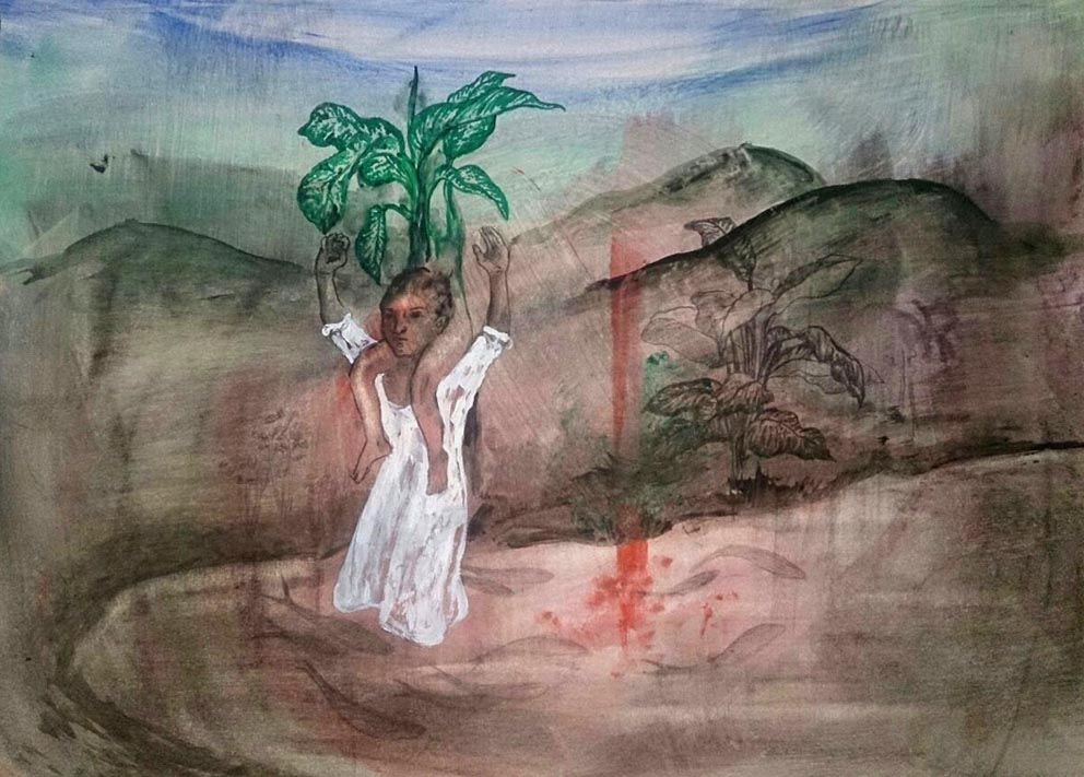 Pooneh Oshidari , Drown, 2016, mixed media on cardboard, 23x42cm