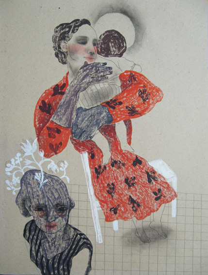 Pooneh Oshidari , Virgin And The Child , 2011, mixed media on cardboard, 60x45cm
