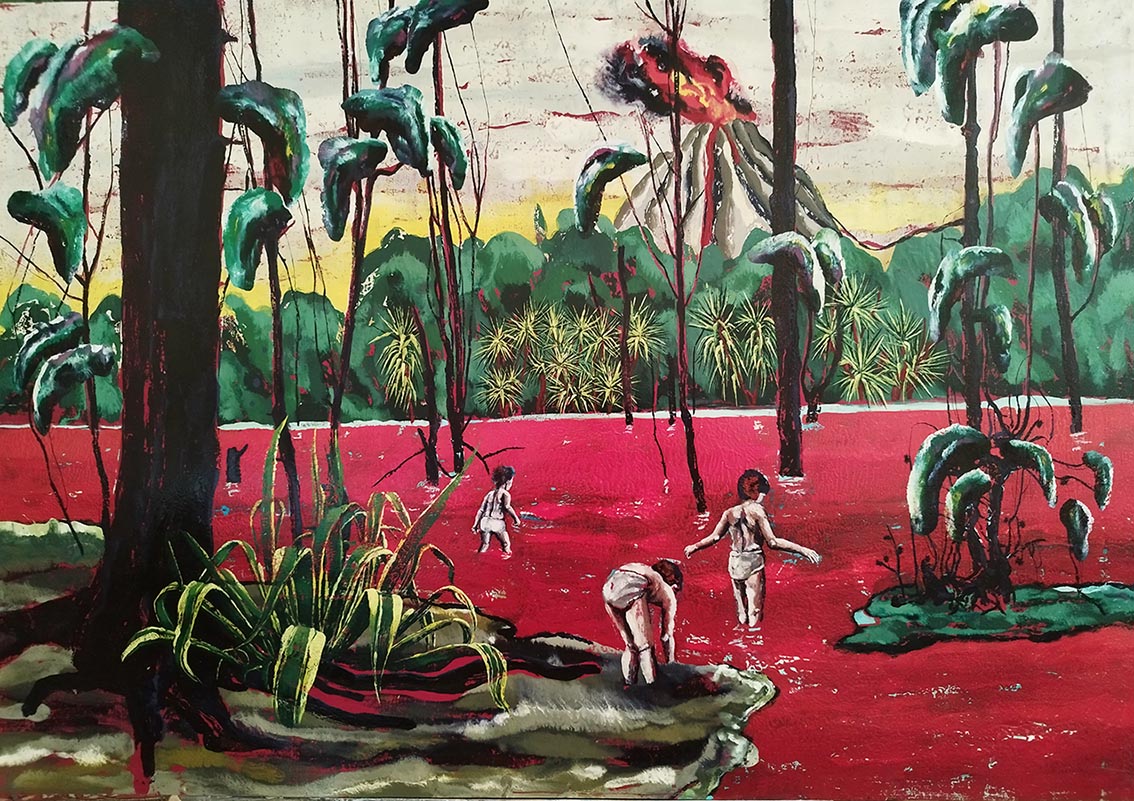 Pooneh Oshidari , Pooneh Oshidari , "Far from Home" - 2022. relief ink and oil on oil-painting paper. 40x50cm.