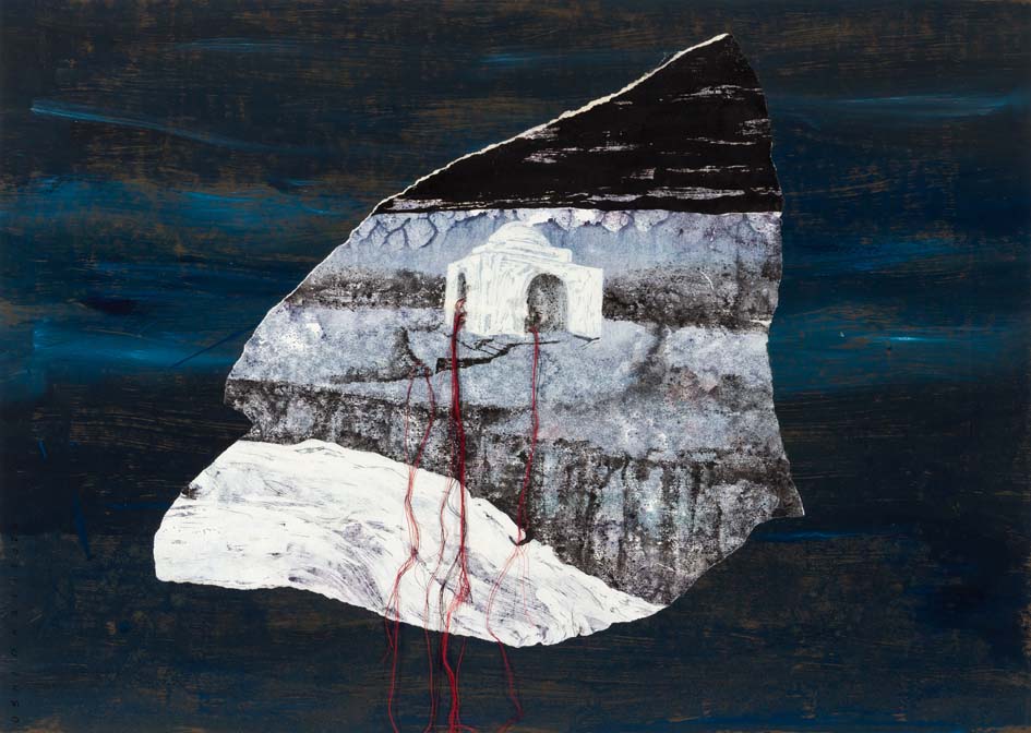 Pooneh Oshidari , Home-Land series, 2020. ink and fabric on paper. 50 x 70 cm