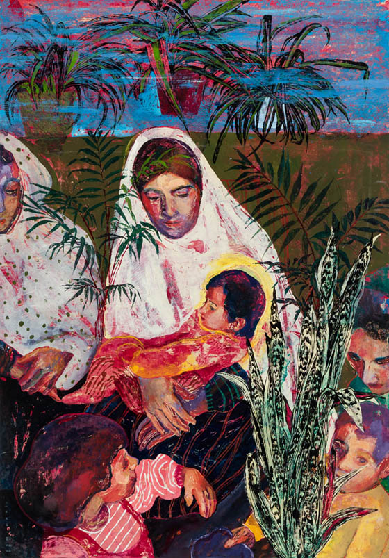 Pooneh Oshidari , A family in Yazd, Homeland series. ink on paper. 100 x 70 cm.