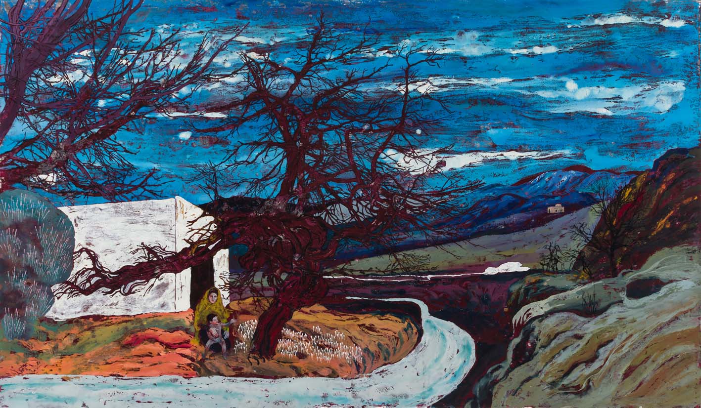 Pooneh Oshidari , Home-Land series, Espakhou Temple, 2021, relief ink on paper, 105 x 180 cm