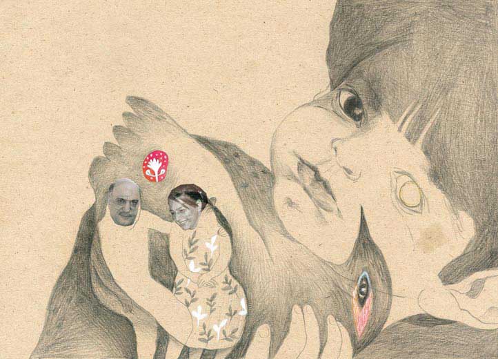 Pooneh Oshidari , Dating,_2009,_Mixed_Media_on_cardboard,_25x40cm