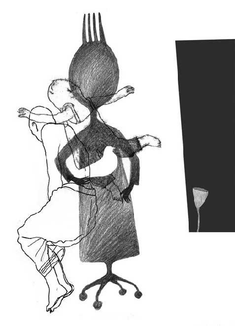 Pooneh Oshidari , The_Man,_Women_are_still_in_the_sky,_2010,_mixed_media_on_paper,_21x14cm